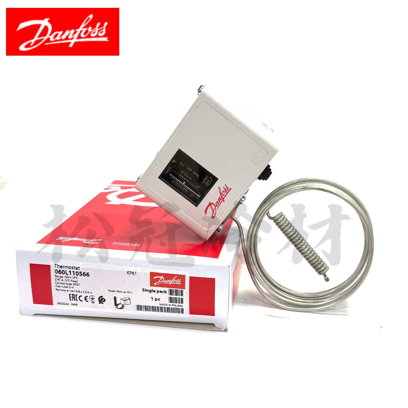 060L110566 防凍開關-DANFOSS丹富士 產品介紹 ●Range:-30~+15℃ ●感測尺寸:3/8 x 2 3/4 in(9.5 x 70 mm) ●毛細管:2000mm ●總重:0.424kg ●相關尺寸如下