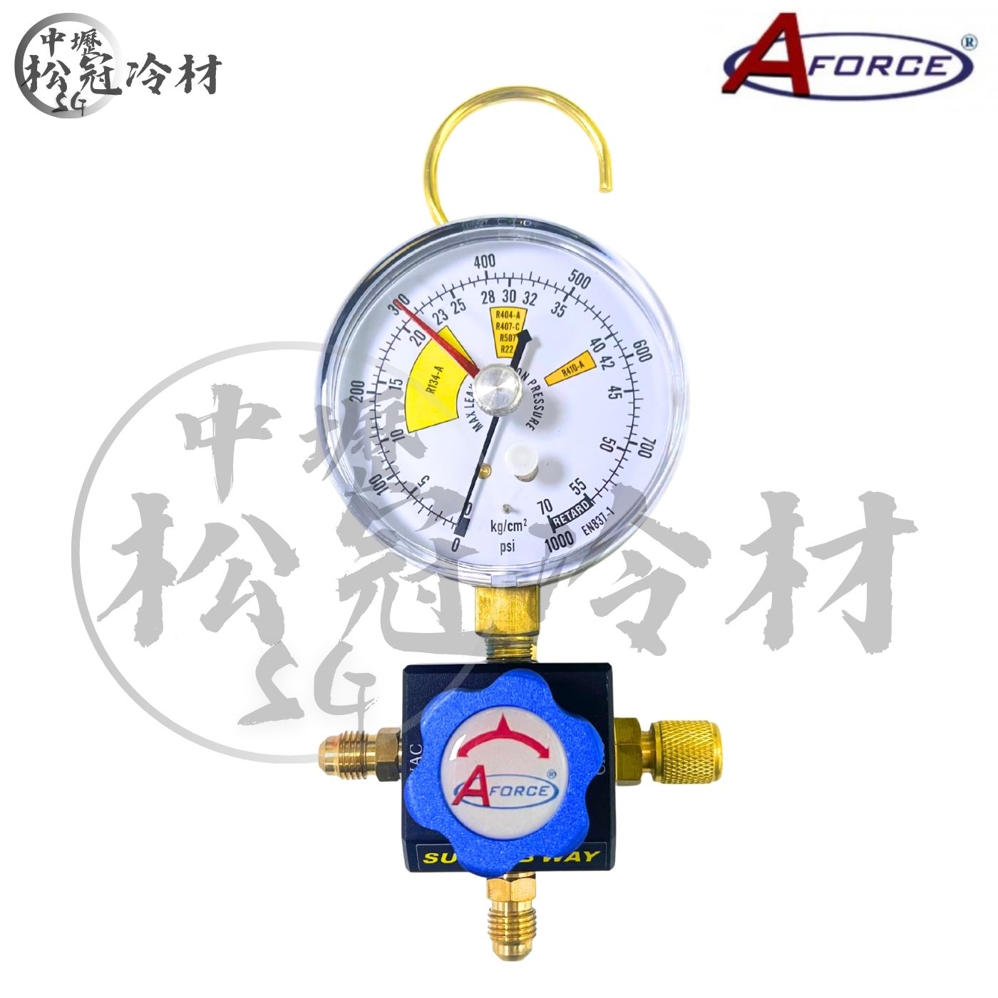 AFORCE 暫壓錶錶組(無附皮管) 產品介紹 ●適用冷媒:R134A/R404A/R407C/R507/R22/R410A ●適用壓力:0至 1000psi(0至 70 kg/c㎡) ●80mm大錶面,附有記憶指針 ●一錶可多種系統檢視 ●台灣製造 桃園中壢松冠冷氣冷凍材料批發零售,如有相關材料問題,歡迎來電詢問!
