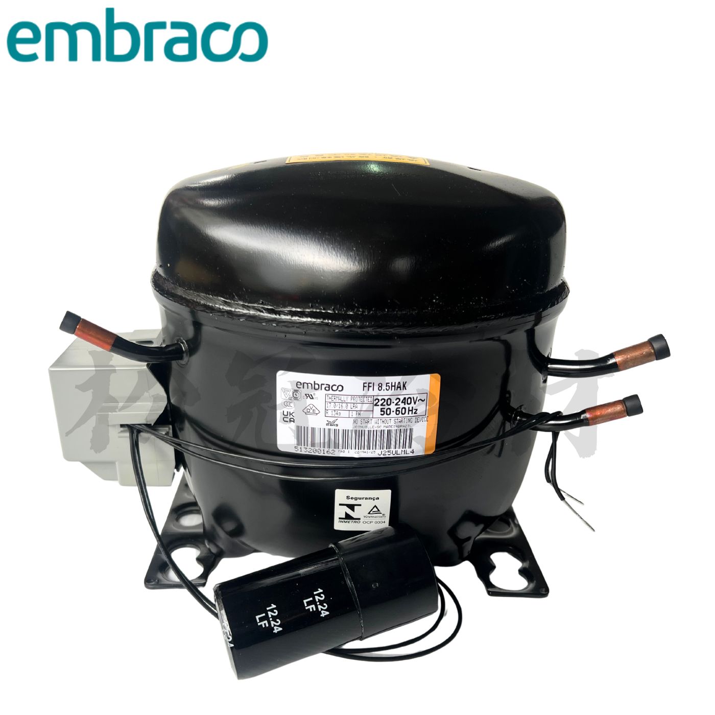 英柏格 Embraco FFI8.5HAK 產品規格 ●應用範圍:低/中/高溫 ●冷媒:R134a ●電壓:220~240/50~60Hz ●排氣量:7.95 CC ●馬力:1/4HP ●冷凍能力(-23.3℃):740 BTU/h 冷凍能力(+7.2℃):3135 BTU/h