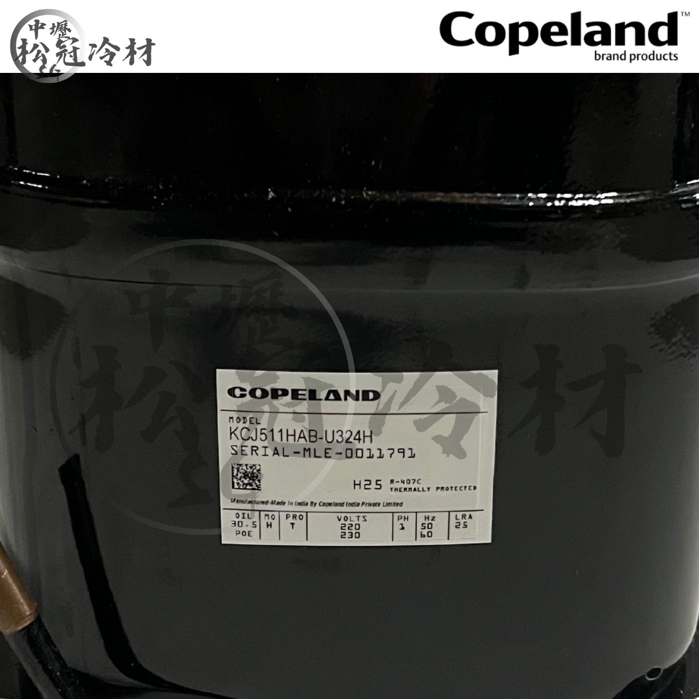黑金剛 Copeland KCJ511HAB-U324H 產品規格 ●應用範圍:高/中溫 ●冷媒:R22/R404/R407C ●電壓:230V/60Hz ●馬力:1 HP ●排氣量:21 桃園中壢松冠冷氣冷凍材料批發零售,如有相關材料問題,歡迎來電詢問!