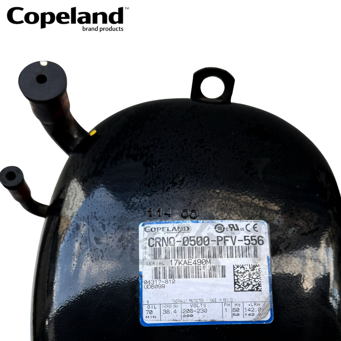 黑金剛 Copeland CRNQ-0500-PFV-556 產品規格 ●應用範圍:高/中溫 ●冷媒:R22/R404/R407C ●電壓:208~230V/60Hz ●馬力:5 HP ●單相 ●排氣量:94.6 ●電容:270~324uf/ 330Vac 55uf/ 440Vac