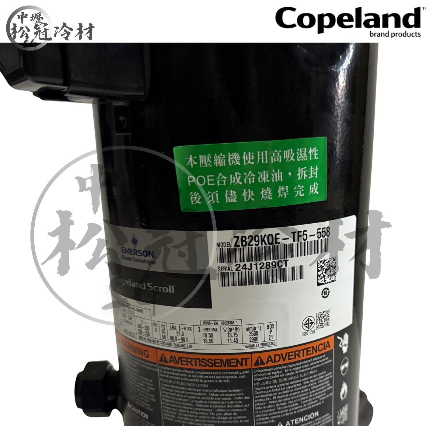 黑金剛 Copeland ZB29KQE-TF5-558 產品規格 ●冷媒:R404A ●應用範圍:中/低溫 ●電壓:200~230V/60Hz ●馬力:4HP ●三相 ●排氣量:65.5 桃園中壢松冠冷氣冷凍材料批發零售,如有相關材料問題,歡迎來電詢問!