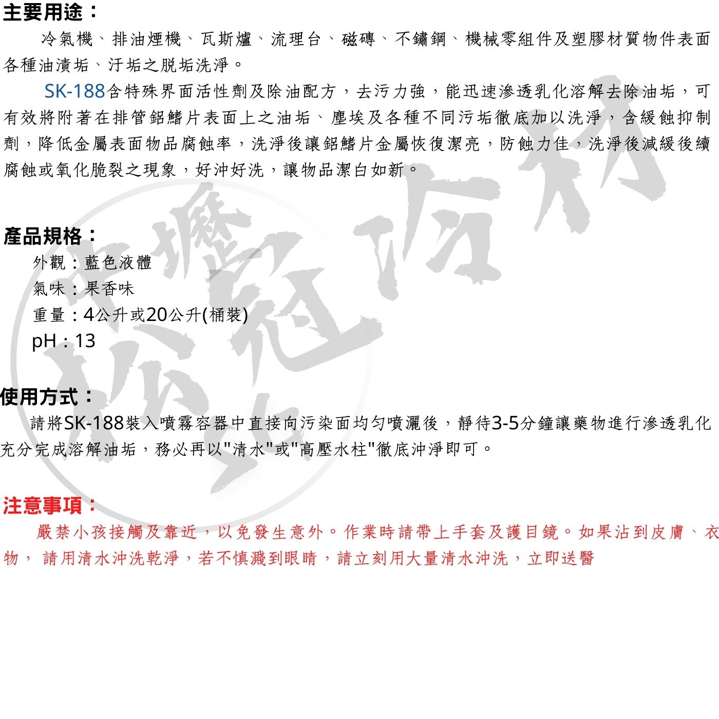 SK188為鋁鰭片鹼性清洗藥劑,重油垢專用,除油劑