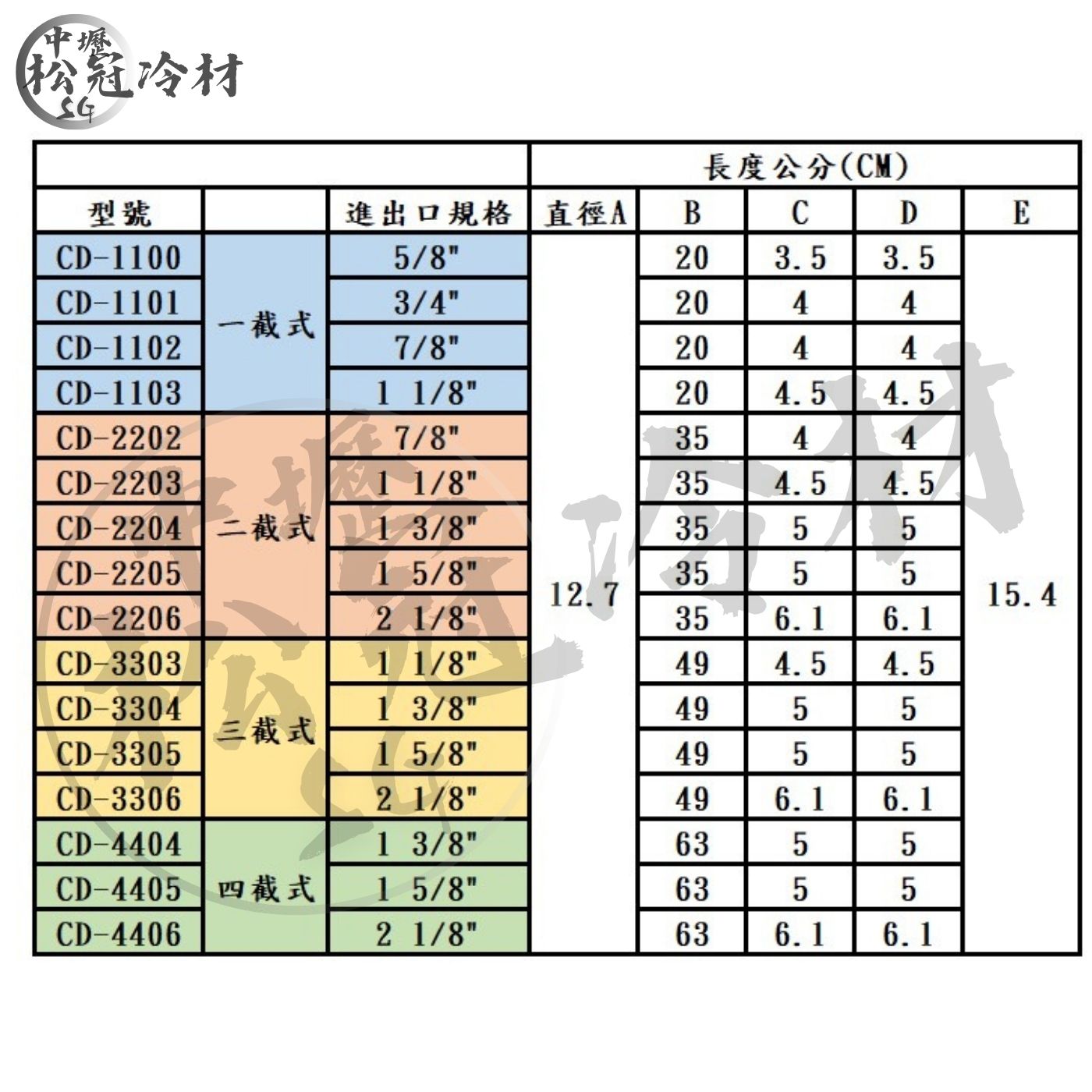 SHIN TIME 過濾乾燥筒 (Replaceable Core Type Filter-Drirers) 產品規格 CD系列-冷凍空調專用乾燥桶 產品型錄 桃園中壢松冠冷氣冷凍材料批發零售,如有相關材料問題,歡迎來電詢問!