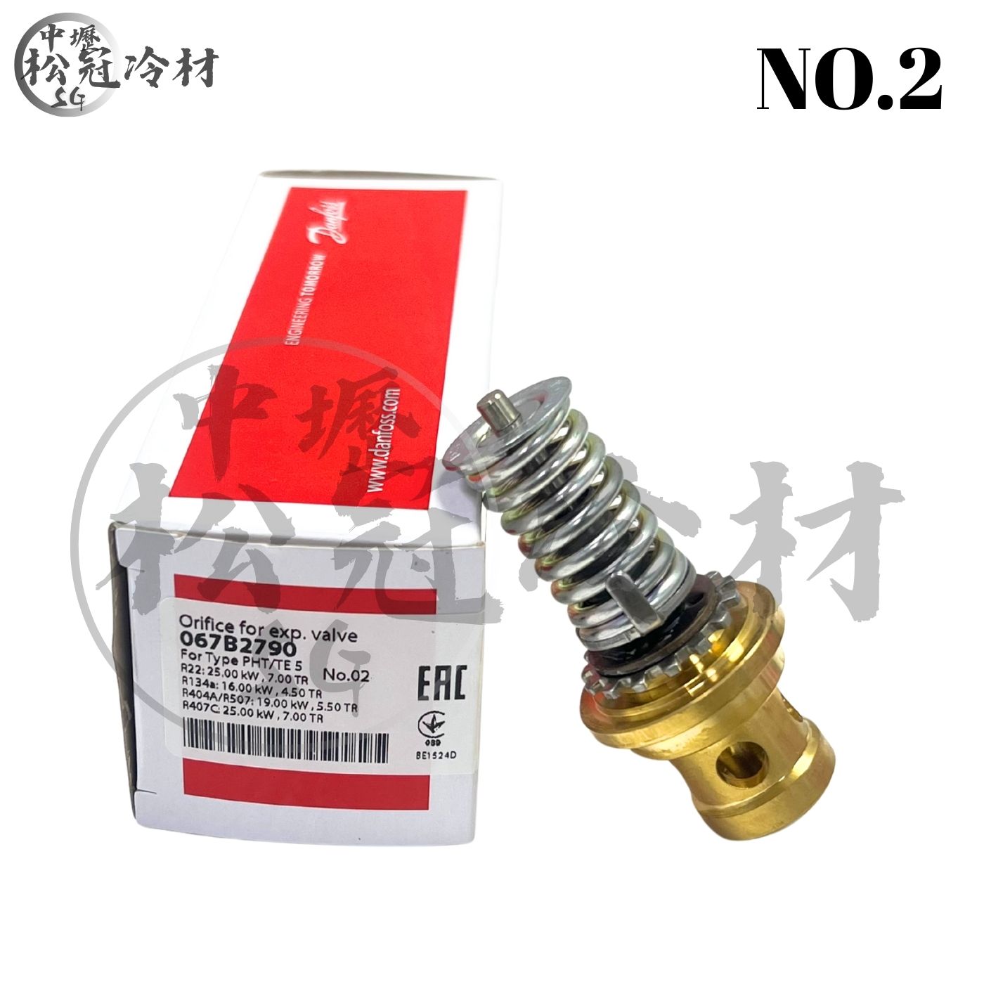 DANFOSS丹富士 膨脹閥TE5專用閥芯 產品規格 ●此閥芯為TE5系列專用閥芯 ●NO.1:#067B2789 NO.2:#067B2790 NO.3:#067B2791 NO.4:#067B2792 桃園中壢松冠冷氣冷凍材料批發零售,如有相關材料問題,歡迎來電詢問!
