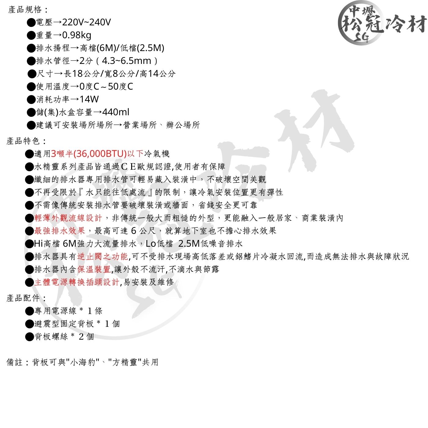 水精靈應用於3噸半以下冷氣機型,揚程米數長