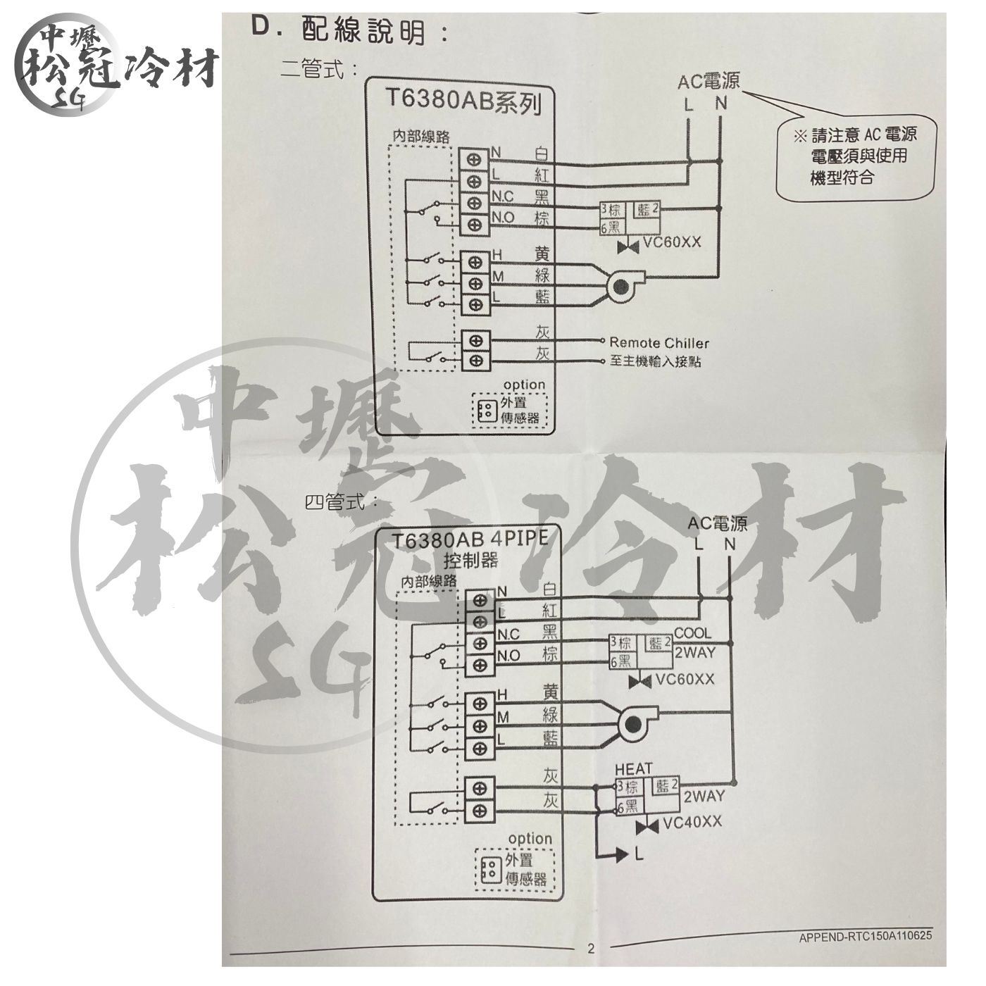 產品介紹 ●應用於:冰水機溫度控制 ●冷/熱模式可調,3速加自動封切換應用 ●控制二管送風機盤管中的閥門和送風機的開關,定風量及風速 ●電壓:220V ●溫度設定:5~30度C ●尺寸:長12.2CM/寬8CM 產品配線圖 桃園中壢松冠冷氣冷凍材料批發零售,如有相關材料問題,歡迎來電詢問!