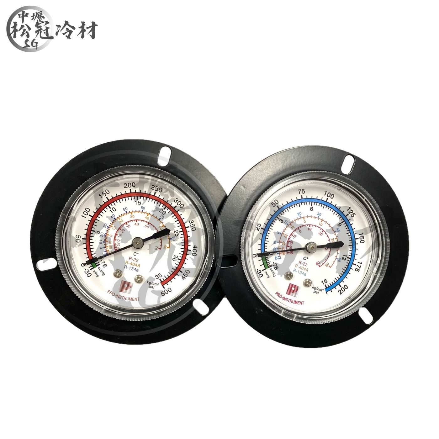 埋入式壓力錶(無充油) 產品介紹 ●適用冷媒:R22/R134a / R404c ●後方牙口尺寸皆為銅牙1/4"(2分) ●低壓→0~200psi / 0~15kg/cm2 高壓→0~500psi / 0~35kg/cm2